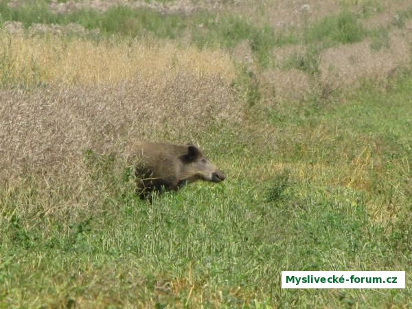 Divočák při sečení řepky - jediný divočák, kterého jsem ulovil přes foťák.