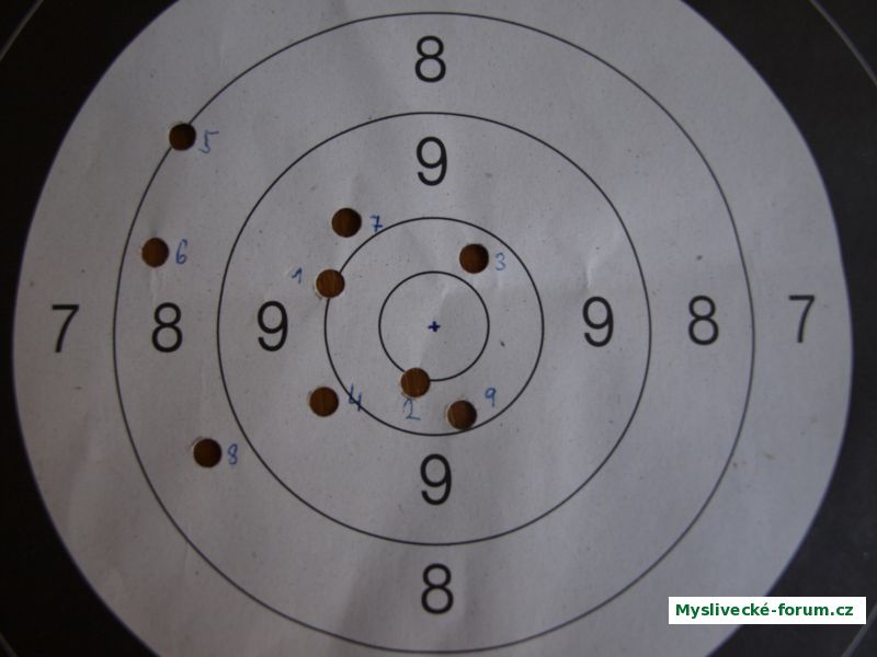 rozptyl 10 cm, rozhádzané skoro po celom terči. Tak s týmto sa zodpovedne loviť určite nedá.... Vykašli sa na "zázračné" strelivo SB a skús niečo normálne. Na vedlajšej fotke od V. Mesároša je "trochu" inakší nástrel, tak to má vyzerať