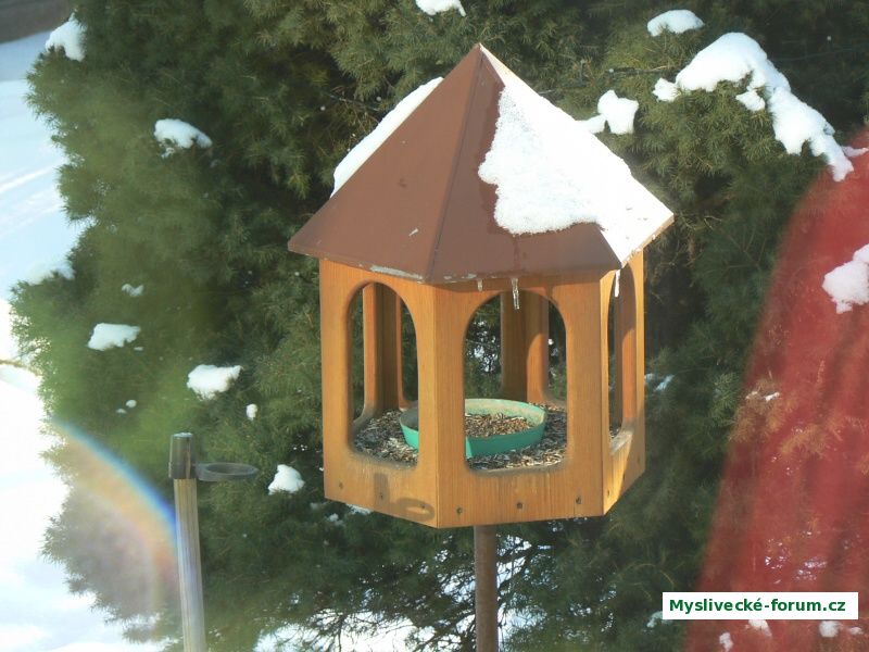 Krmítko dostupné pro všechny druhy, plexi již nedávám, ptáčci při vyrušení jsou schopní se utlouct. Já tedy za krmení ušetřím, ročně tak 1 kg slunečnice a 1 kg směs, skoro neberou, neb všude kolem na zahradách jsou další krmítka a ptáci jsou přežraní. Je pravdou, že dávám i lojové koule, ty vcelku berou. Větší úspěch mám s napájením, v rybníčku jde stále vzduchování a hladina nikdy nezamrzne.