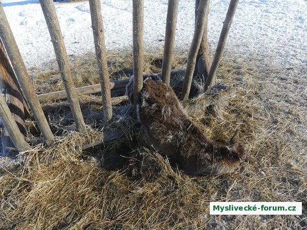 Osobně bych to spíš viděl na nevhodnou velikost mezer v žebři, ne na zimu. Ale jednou jsem viděl i udušeného jelena v žerďovém oborním záskoku.