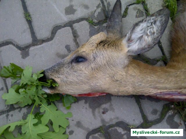 A tohle je můj srnec, roček, z prvního dne odstřelu. 10 kg bez hlavy a běhů. Omluva za kvalitu, foceno mobilem.