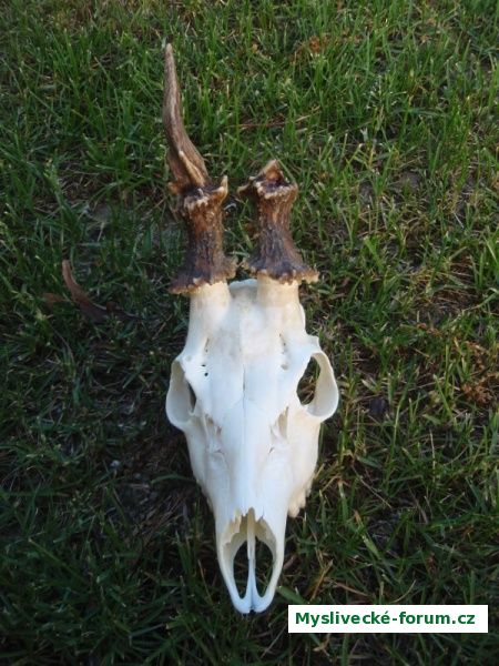 Mirku Lovu zdar. Vyvržený bez hlavy a běhů měl 19 kilo, což je u nás dost nadstandard, hmotnost srnců ve 2-3 věkové se pohybuje okolo 14-15ti kilo. Podle chrupu to vypadá na 5 - resp. podle obrusu na M1, ale moc se mi to nezdá, jelikož má úplně "sjetou" P2 a obrus na P3 a posledním sloupku M3 vypadá na staršího srnce. A taky síla pučnic - u nás poměrně spolehlivý ukazatel - nesedí na 5ti letého.. Ale to jsou už jen detaily :-)