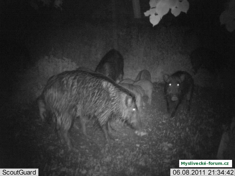 Divočáci po dešti přišli brzo na vnadiště 3. Stejná tlupa jako předchozí večery.
