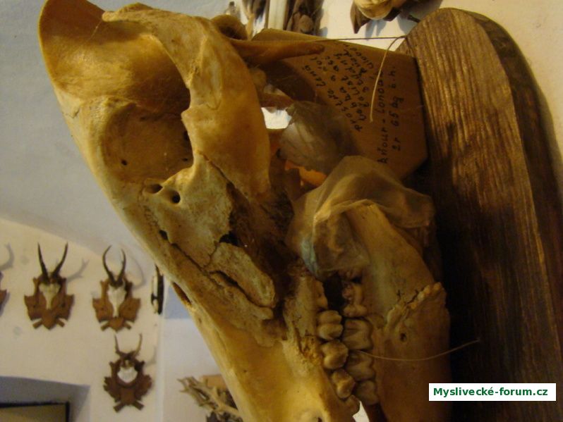Lebka divočáka po ráně na hlavu,stímto zraněním žil 14 dní než jsem ho ulovil.(dílo jednoho bývaleho kolegy)