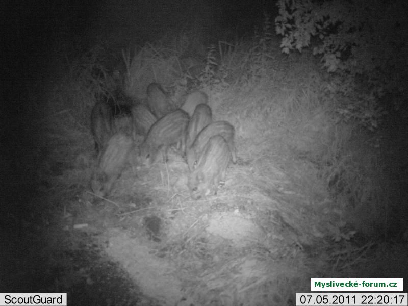 Selata na vnadišti u kukuřice. Dospělé kusy už s nimi nechodí a jak začnou být klasy na kukuřici, což bude každým okamžikem, pravděpodobně přestanou chodit i selata.