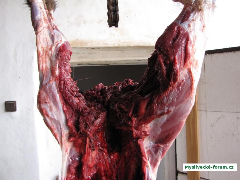 Vzhledem k tomu, že jsem na nastřelu našel velkou část toho, co vzadu chybí, vnitřnosti nakaši, a i když část střely šla dopředu, tak bych to viděl na práci zbytku střely. I když to požrání nelze taky vyloučit, protože jsem pak ještě poměrně dlouhou dobu (2 hodiny) čekal a pak ještě dlouhou dobu hledal (1,5 hodiny), protože prase odešlo do rákosí.