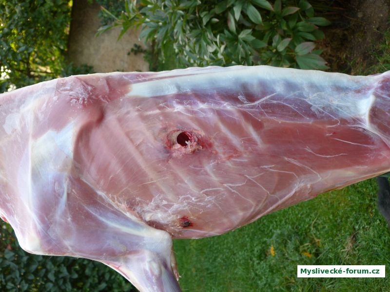 Poškození zvěřiny po 308W SB SP 180grn.Vzdálenost 150m, výstřelová strana.