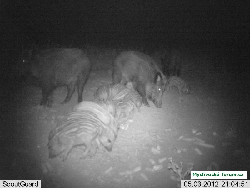Divočáci na vnadišti u řepky - stejná tlupa jako minule, vypadá to na 3 velké kusy a 12 selat.