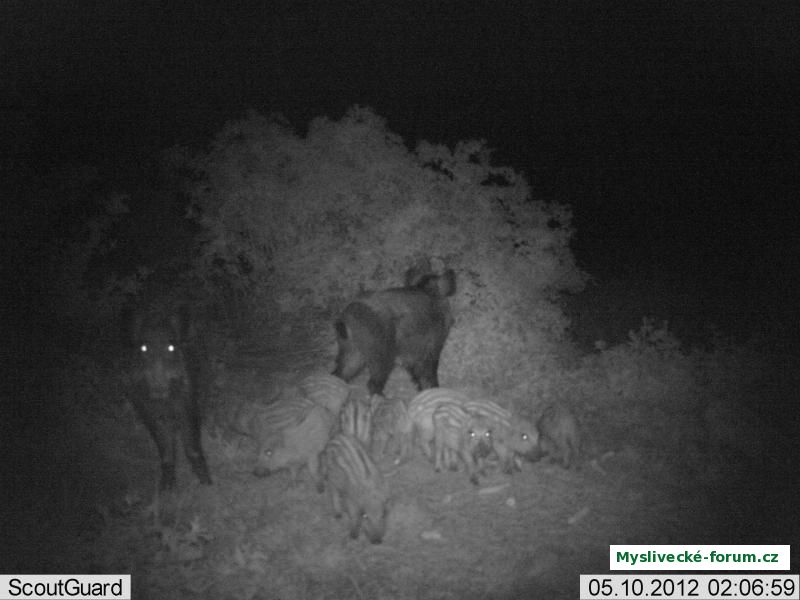 Včera - vlastně dnes přišli divočáci až ve dvě a to ještě asi ani v potoce nebyli. Pořád ta samá tlupa.
