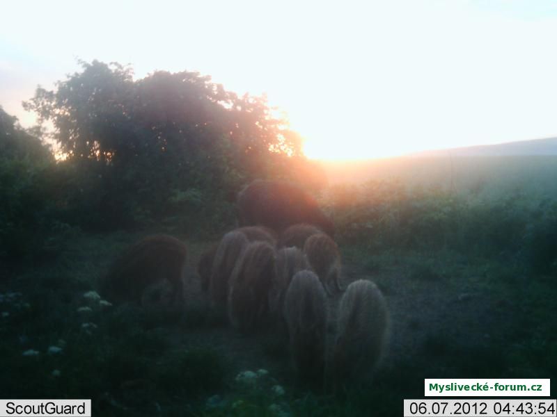 Třetí návštěva divočáků na vnadišti za noc - brzo po ránu.