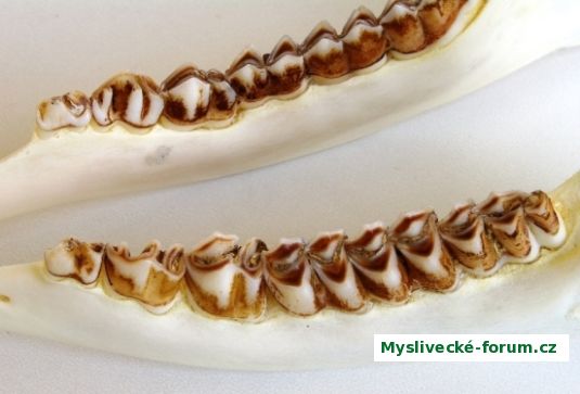 Honzo, tenhle argument slýchávám často, ale nemohu ho ze své praxe potvrdit. Kolik srnců z lesa vůbec nevychází do polí a kolik srnců z polí alespoň nespásá větvičky křovin? Co má opravdu vliv: pobyt v zimě na řepništi a dolování zmrzlé a zablácené řepy, a dále délka a "síla" laktace matky, případně další výživa v mládí - ty umožní narůst zdravé zuby s pevnou sklovinou, která se pak pomaleji obrušuje.
