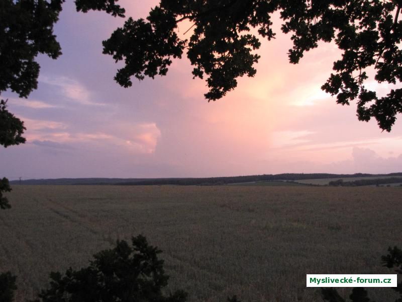 Výled z posedu na dubu. Pohled dopředu. Všude jen okna z větví, jak se trochu pohne vítr, lov je hned o mnoho zajímavější :-).