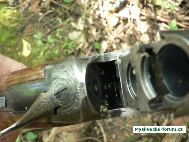 Snímky 1 a 2,místo broků použit mák.Při výstřelu se ozvala rána jako z kanonu,neucitil jsem žádný zpětný ráz,jenom jakési plesknutí,a celá dávka máku zůstala v ústí laufu.Mák zřejně nebyl dost suchý,a od něho zvlhl prach jehož nespálené zbitky jsou vidět na druhém snímku.IŽ ka to přečkala bez úhony,a já jsem z podobných pokusů vyléčený.