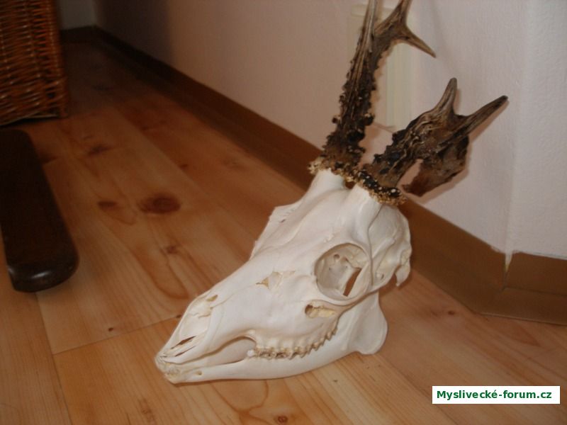 Trofej srnce po vyvaření, za povšimnutí stojí na prvé straně průraz do lebky, absolutně nevím od čeho to může být, srst byla neporušena.