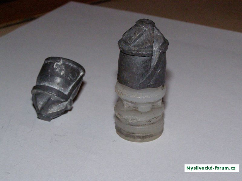 Takto vypadá italská střela - její deformace pouhým průchodem hlavní. Střela nalezena po roztátí sněhu na holé zemi. Střelivo jsme ze zvědavosti testovali po zkončení naháňky na nějaký čnějicí suchý bodlák proti závěji...