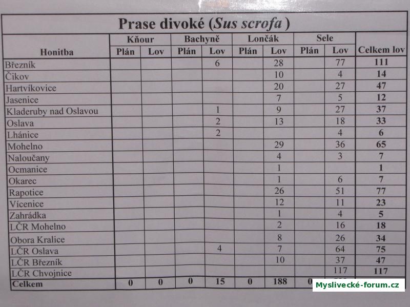 Statistika není nic jiného, než přesný součet nepřesných údajů a Němci to říkají ještě výstižněji - statistika je kurva, která se nechá ojebat od každého. Za dva roky bylo uloveno 1057 prasat - dejme tomu. Ale že z toho byli pouze 2 kňouři starší dvou let, tomu snad nemůže uvěřit vůbec nikdo. A co se týče bachyní - tam zase to číslo 28 vůbec nesvědčí o tom, že bychom to se snižováním počtu černé zvěře mysleli vážně. Ale to neplatí jen pro Náměšťsko, stejná hausnumera najdeme všude.