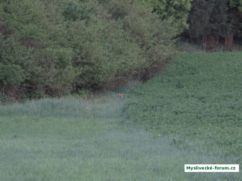 Z pondělní čekané z dnes. Sedí pod posedem (ten není vidět, ale stojí tak 10 m vlevo na rohu lesa) a ani nemukne.