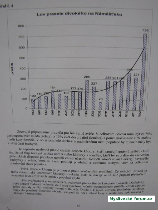 Tenhle graf je statistika Náměšťska, což je nějakých 18 honiteb, ale polovina černé zvěře se uloví jen v naší a třech sousedních honitbách, a když jsou žaludy, tak u sousedů v lese se toho nenaloví, pak se naloví jen u nás :-). Je taky zajímavé, že na Náměšťsku jsou ještě honitby, kde se černá za celý rok třeba ani neuloví nebo jen do 5ti kusů, což je z mého hlediska skoro až neuvěřitelné :-).