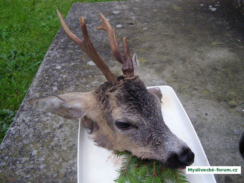 Lovu zdar, chlapi. Hlavu jsem včera udělal, tak má 5 let. Je to klasický náš srnec z lesa, lehká jako by "papírová" lebka, slabé pučnice i to paroží.