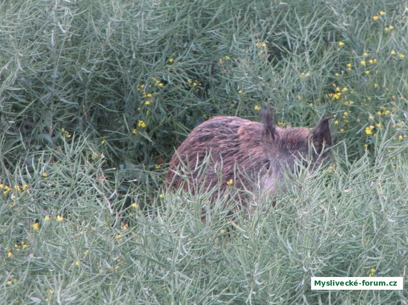 V úterý se před devátou ponejprv objevila v řepce jedna bachyně...