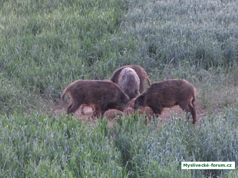...a hodovalo. Celkem 11 selat a 7 kusů, tři byly odháněni a stáli opodál v pšenici - bohužel to asi byly ty lovnější kusy.
