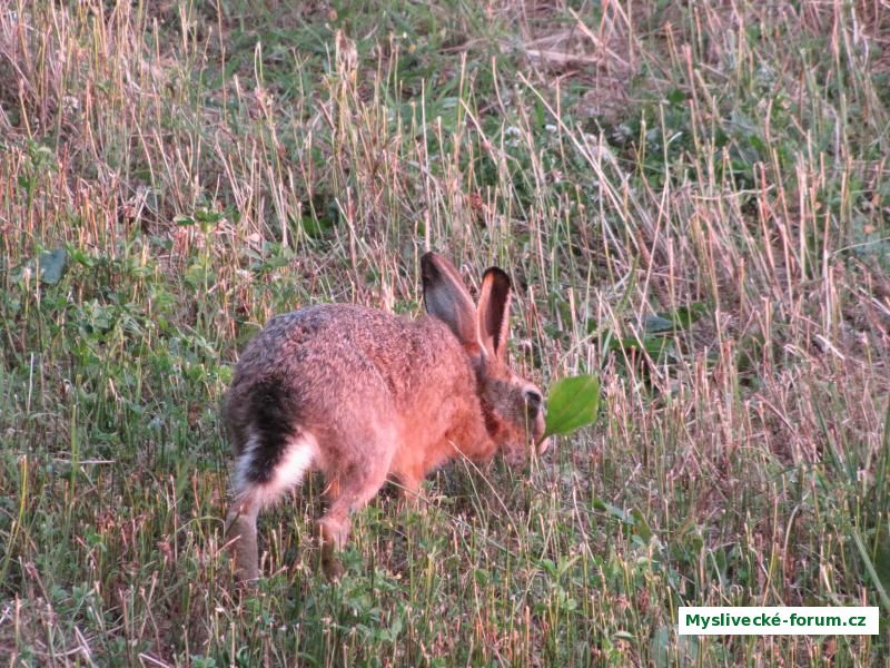 Zajíc na večeři, nejvíc mu chutnali tyto velké listy rostliny, na jejíž název si momentálně nemůžu vzpomenout :-).