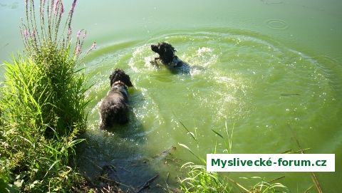 Voda od sinice zbarvená jako tráva.Tam bych lovecké ani jiné psy nepouštěl.