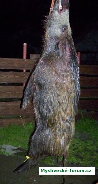 Přesně před týdnem ,taky v pondělí:-)v 20hod za plného světla.Ráže 243win. střela SaB PTS vzdálenost cca 45 metrů ,uloven na čekano-šoulačce na srnce.Po ráně zůstal na nástřelu ,vstřel těsně za plec,neprostřelen.Při bourání se našly jen střepy původní střely ,což svědčí o křehkosti střely PTS,která se rozložila pravděpodobně "na prach"a našel jsem jen tu zelenou plastovou špičku, nicméně předala celou svou energii.Ovšem v případě špatné rány no nevím nevím ,dosled bez barvy by byl asi obtížný vzhledem k několikahektarovému řepkovému poli u kterého byl uloven.
