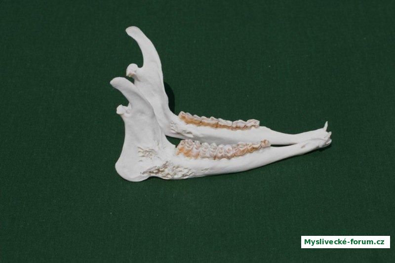Čelist srnce "bezparožáka", oboustranně napadená aktinomykozou.