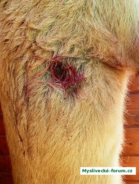 Takže jsem asi dítě štěstěny, když se mi daří samé náhody. Souhlasím s tím, že pokud bude zásah přes plec, bude to vypadat úplně jinak. Nejsem žádnný velký lovec, tak nemohu činit závěry. Vím, že v dobách, kdy jsem byl mladší, nebylo na lov tolik času, takže ji sem tam byl méně povedený zásah. V dnešní důchodové době, kdy mám dostatek času si mužu dovolit lovit jen když to skutečně sedí. Uloveno vyjímečně z posedu, ale do protisvahu, takže v rovině, vzdálenost asi 60-70 metrů.