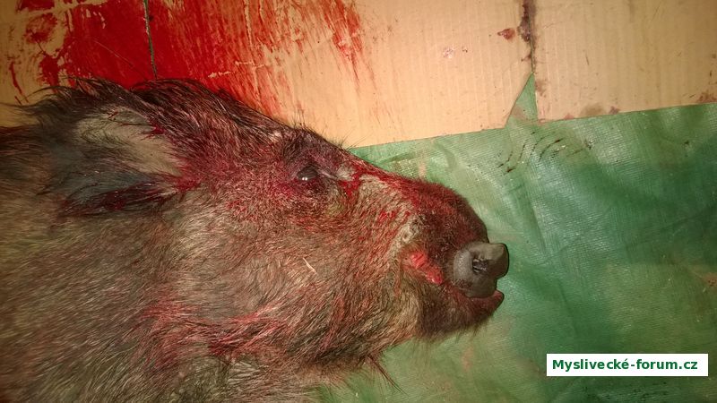 Včera se mi podařilo ulovit sele bachyňku s deformovaným ryjem, přišla sama, plná nebyla, váha 39kg.