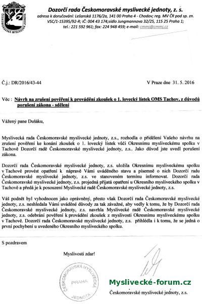 OMS Tachov porušoval zákon o myslivosti. Po dlouhé době jsem dosáhl alespoň uznání toho, že zákon byl porušen. Aby se OMS Tachov na svých stránkách omluvil, toho docílit nelze.