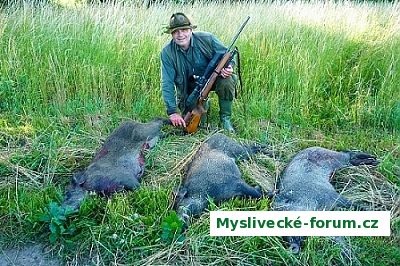 Pánové, pánové, nenechte prchlivost cloumát svým majestátem a otočme list. Na 100 metrů velkýho divočáka někdy trefím i já, ale tři najednou, to se mi nestává :-).