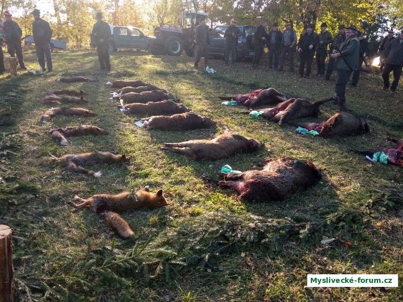 Počasí nádherné a dobrá nálada. Teplé počasí trochu komplikovalo to vše kolem ulovené zvěře, ale zvládli jsme to. Ve dvou lečích jsme ulovili 11 ks černé a 6 lišek.
