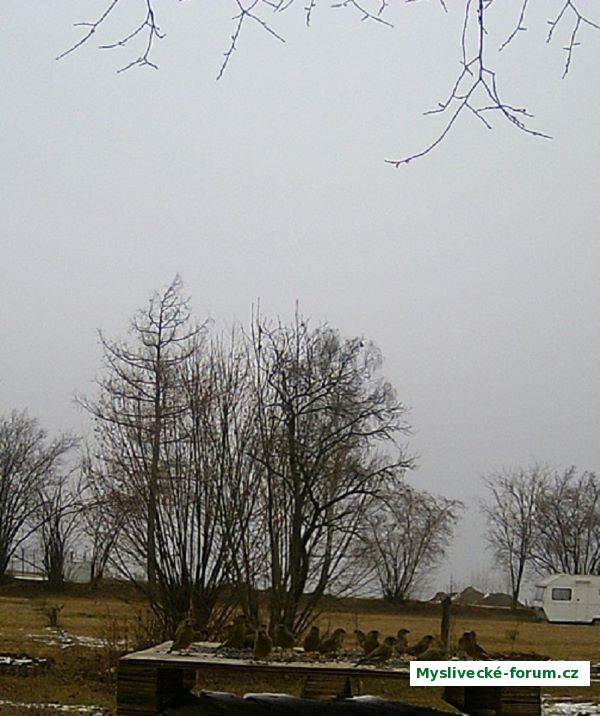 Na co ty hned nemyslíš !!! Náhodou, já jsem si od huby utrhl, abych nakrmil ty hejna hladovců..... Všichni si stěžujou, že jim na krmítka skoro nic nelétá a my tam máme ptáky snad z půl okresu...