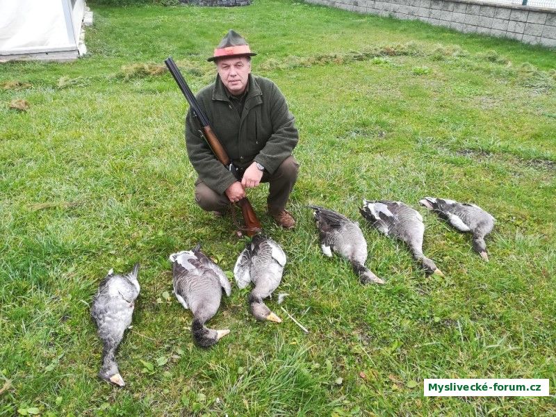 Za 35 let mé myslivosti jsem si střelil svou první husu. Dal jsem pouze dvě rány na jednu a tu samou. Prostě na jistotu. Po první ráně jsem slyšel o ní cvaknout broky, ale letěla dál a na druhou ránu už spadla jako kámen. Střílel jsem 12/70 minimagnum 42,5g - brok 4,5 mm