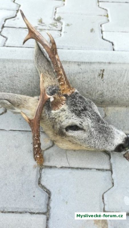 O víkendu jsem u silnice likvidoval sraženého srnce. Vysoký, pravidelný a nadějný šesterák. Škoda ho. Měl uražený jeden parůžek, který se mi na škarpě podařilo nalézt. Hlavu jsem udělal, podle zubů dvouletý srnec, ve zvěřině odhadem ke 20 kg.