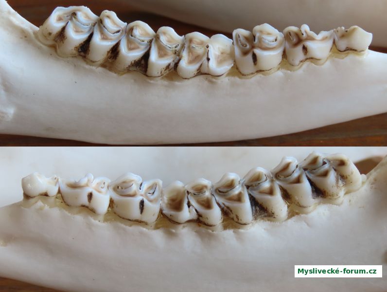 Podle levé čelisti pětiletý - zejména s ohledem na vysoké a ostré vnitřní hrany stoliček, podle pravé strany bych odhadl spíš šest let. V každém případě lovná trojka :-)