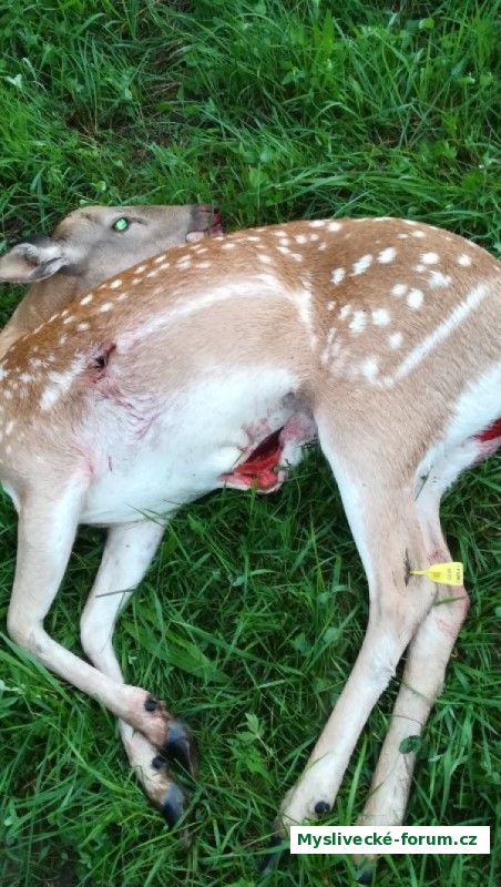 Danělka ulovená cca na 60m, střižnou hranou z Vlašimi , kulobrokem 8x57JRS. Po ráně odskočila cca 5 m, zůstala stát, vrávorala a složila se. Výstřelová strana. Lovu zdar.
