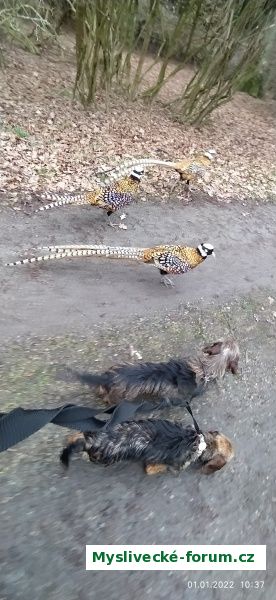 Na procházce v bažantnici, chtěli jít s námi až domů.